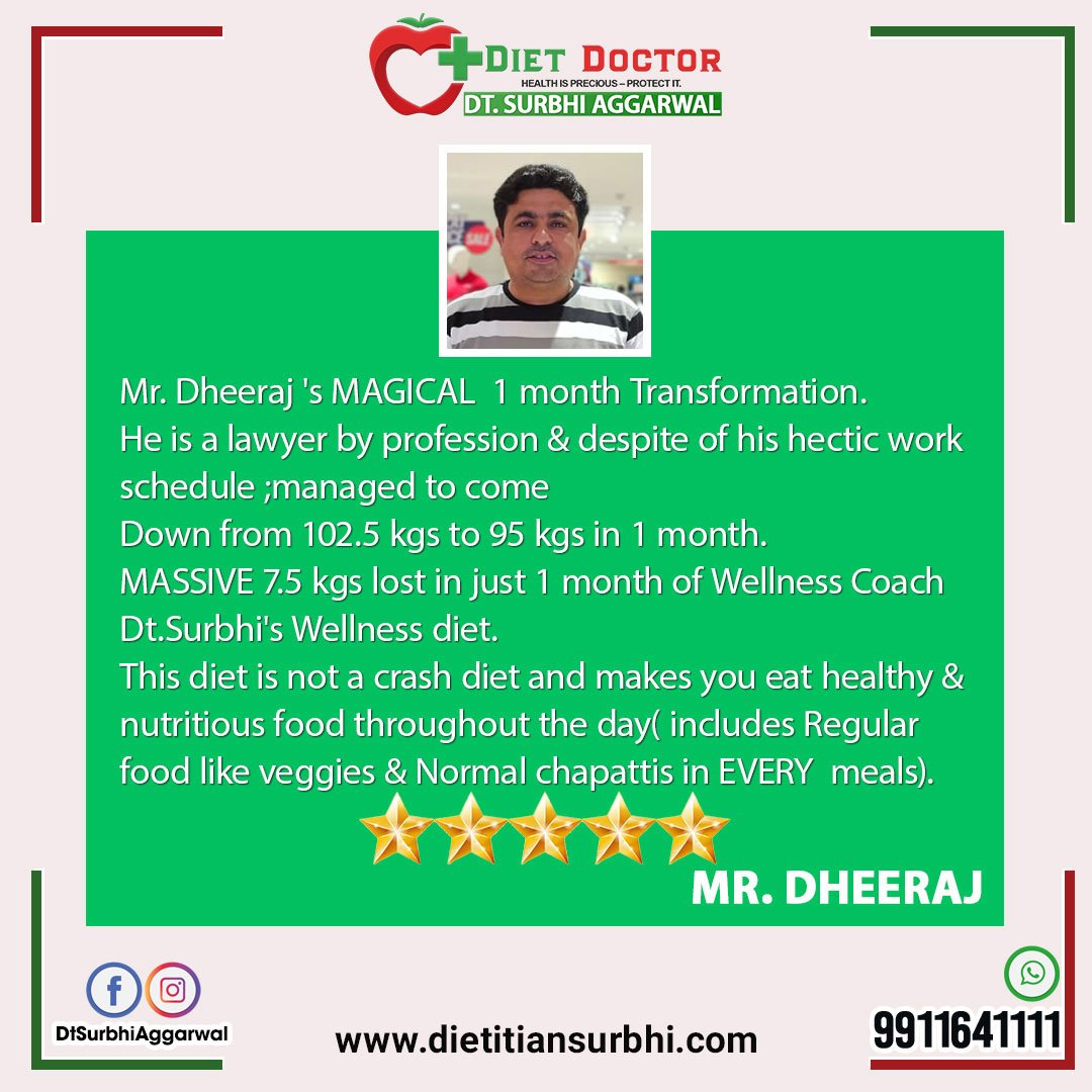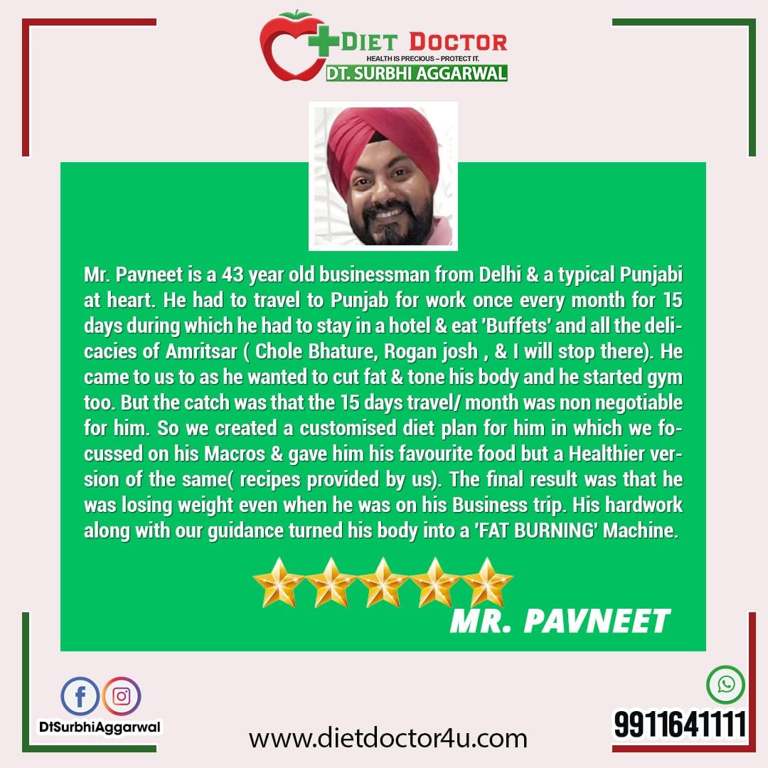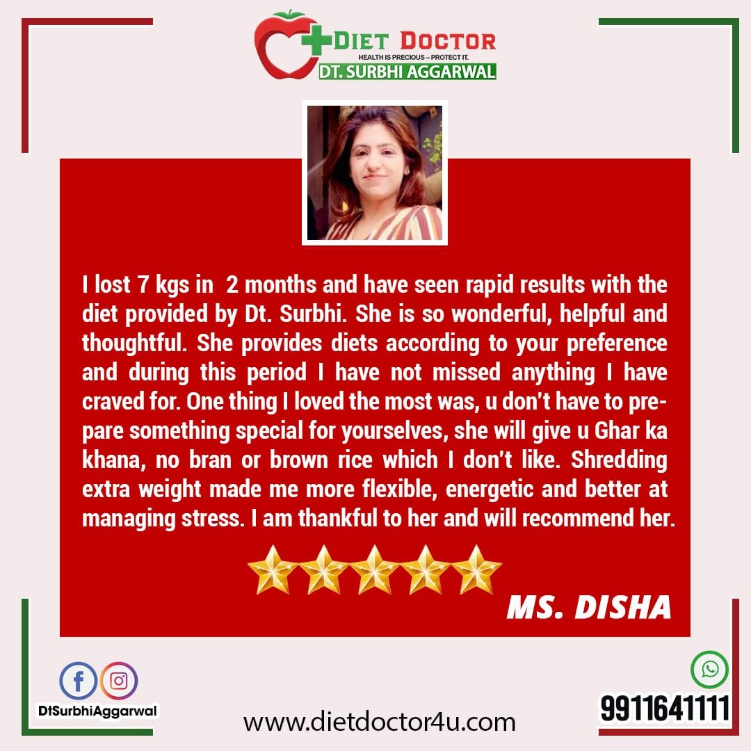 Anyone on the lookout for a weight loss expert in Delhi who merges education, experience and a hands on approach need not look beyond Dietitian Surbhi. What makes her distinct from other professionals is her ardent desire to help clients attain their objectives in the most holistic and practical manner. Her clients are empowered to start their journey to reclaiming their health and happiness with her support.